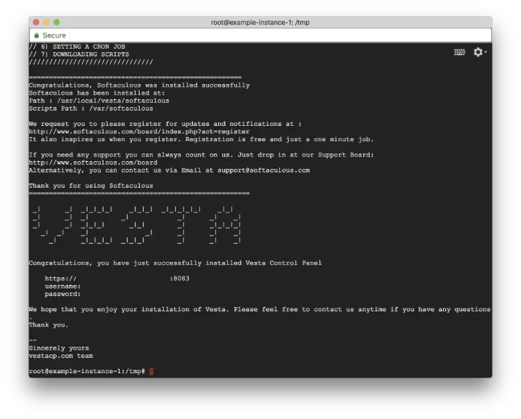 Congratulations! VestaCP is ready. Check out next post for installing PHP 7.2 for your website.