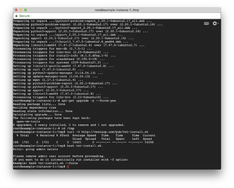 Before downloading VestaCP to the instance, you may need to update and upgrade the packages installed on your server.