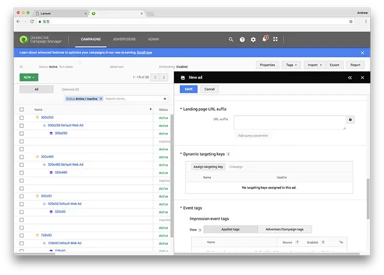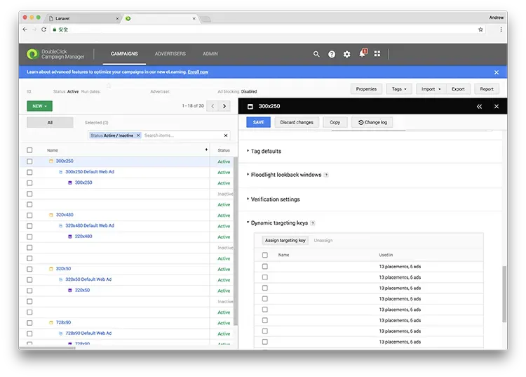 Manage ads with dynamic targeting key in DoubleClick Campaign Manager