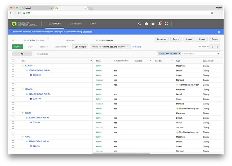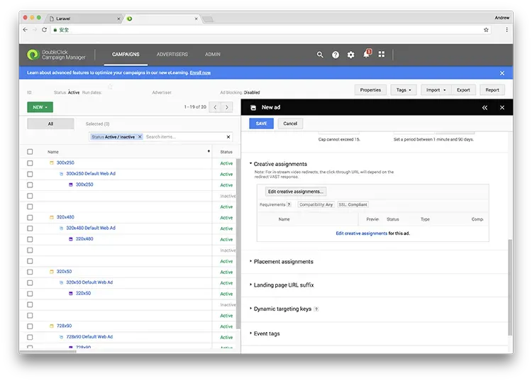 In the previous article, we talked about how to upload a creative with associate advertiser profile to DoubleClick Studio. In this article, we will manage our ads with dynamic targeting key in DoubleClick Campaign Manager.
